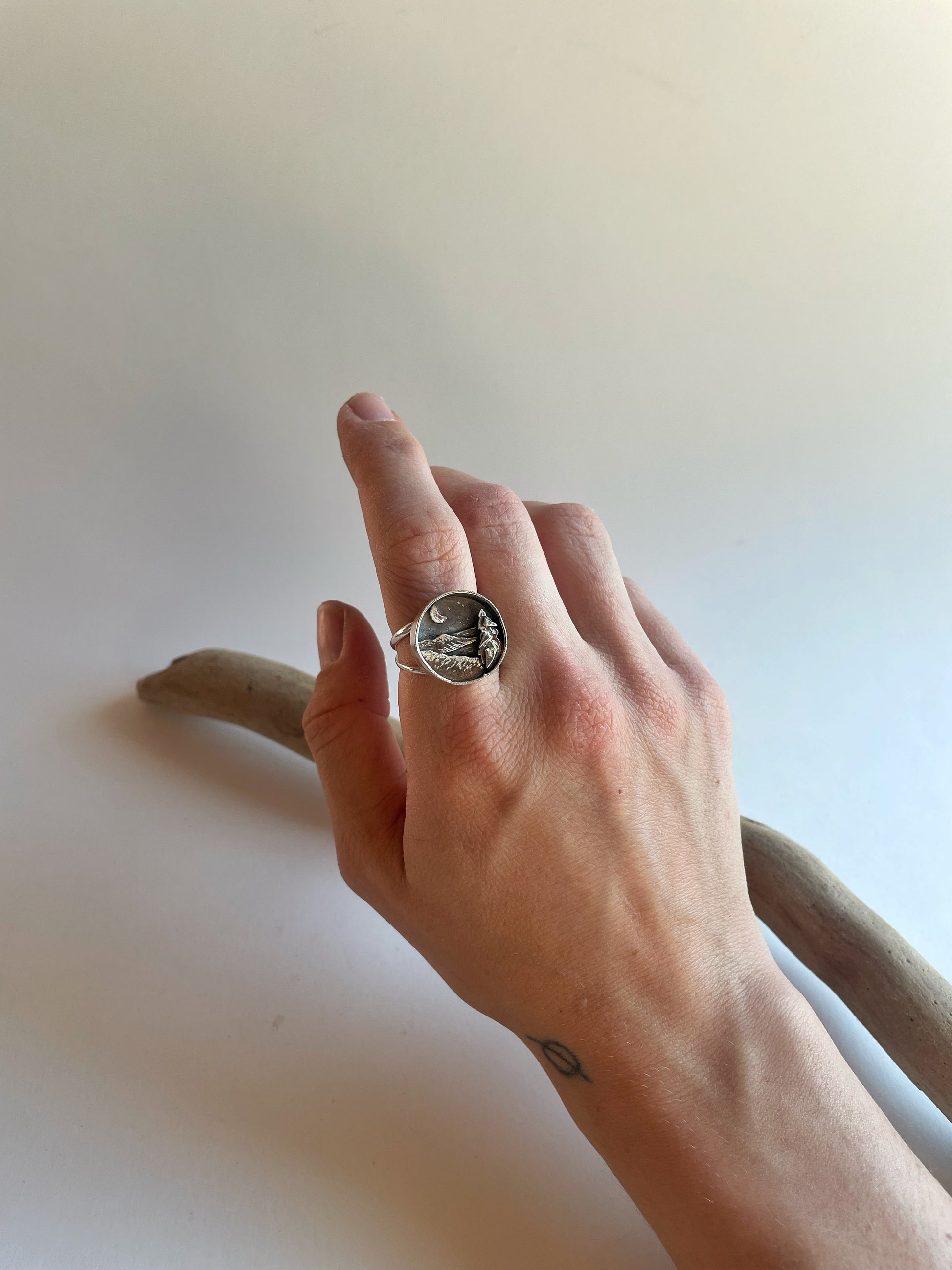 Inspired by the bluffs at McCurdy Point, this ring features 8 layers of hand-fabricated, hand-engraved sterling silver.